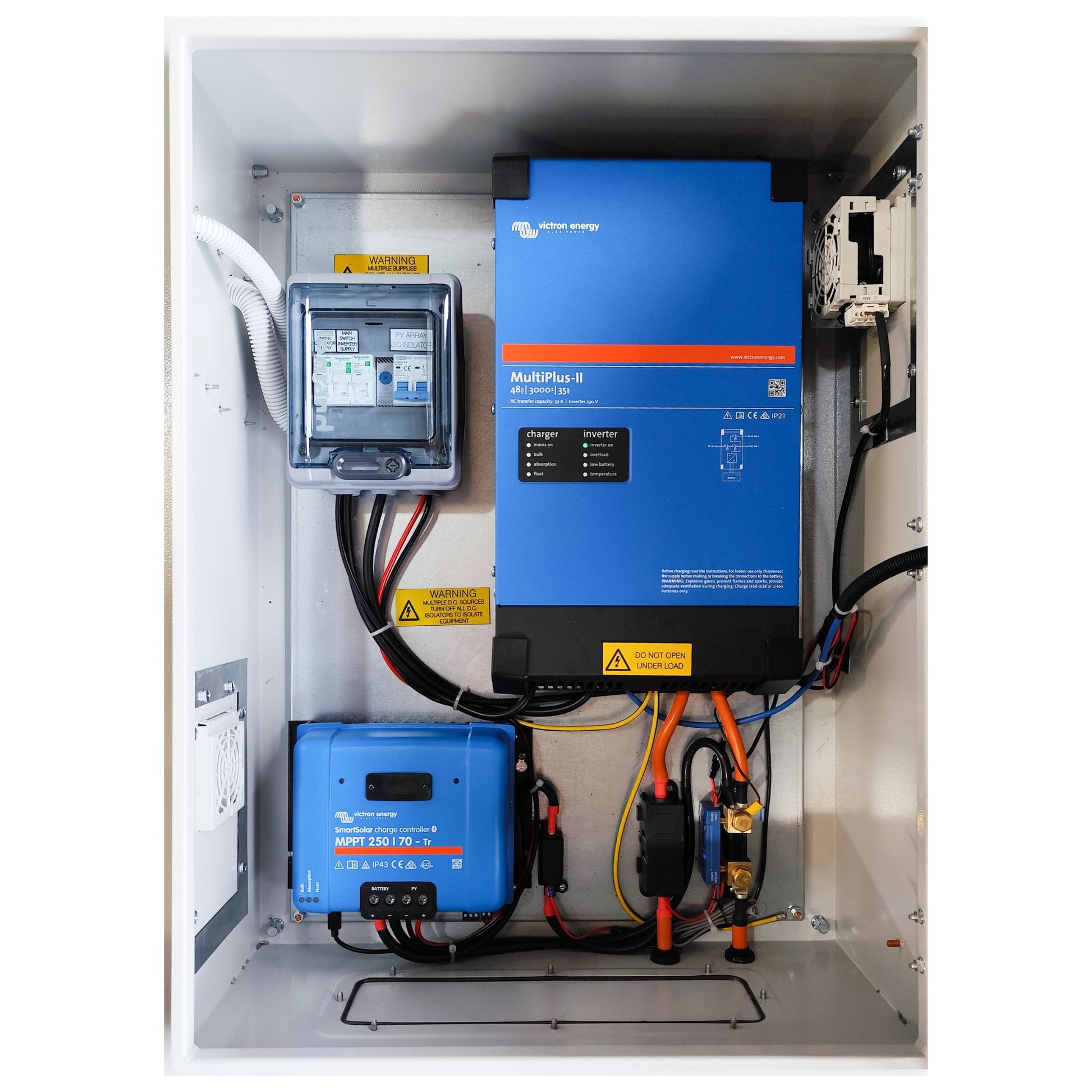 ✅ Fully Prebuilt – Delivered ready to go in a robust, powder-coated steel cabinet with all wiring, breakers, fuses, and connections pre-installed.