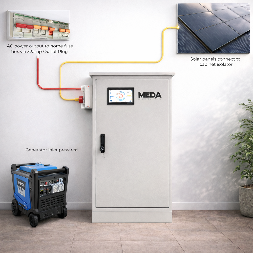 The PowerPlant3 is the third generation in MEDA’s PowerPlant cabinet lineup, delivering a refined, professional off grid power solution designed for tiny homes, bachs, and remote dwellings with limited internal space. Built to operate as a fully external system, PowerPlant3 keeps all major power components outside the home while providing reliable everyday energy where it matters.