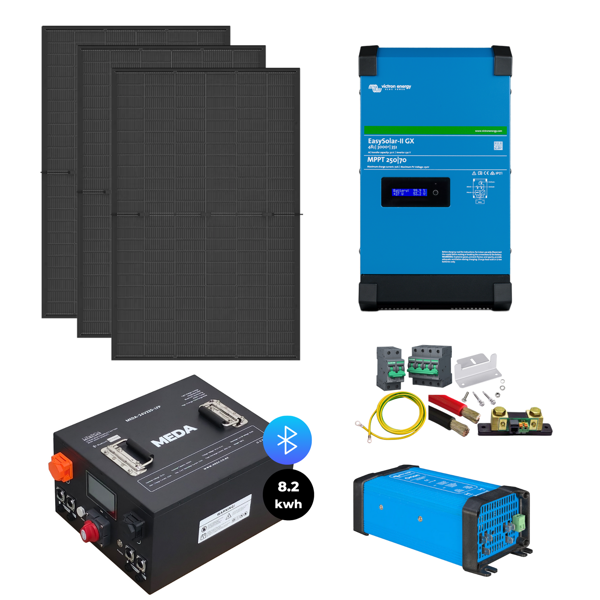 This is the largest and most capable system in the MEDA Motorhome kit lineup. With high output solar large lithium storage and integrated Victron control it is also well suited to small tiny homes off grid bachs and transportable cabins that require a compact but powerful energy solution.
